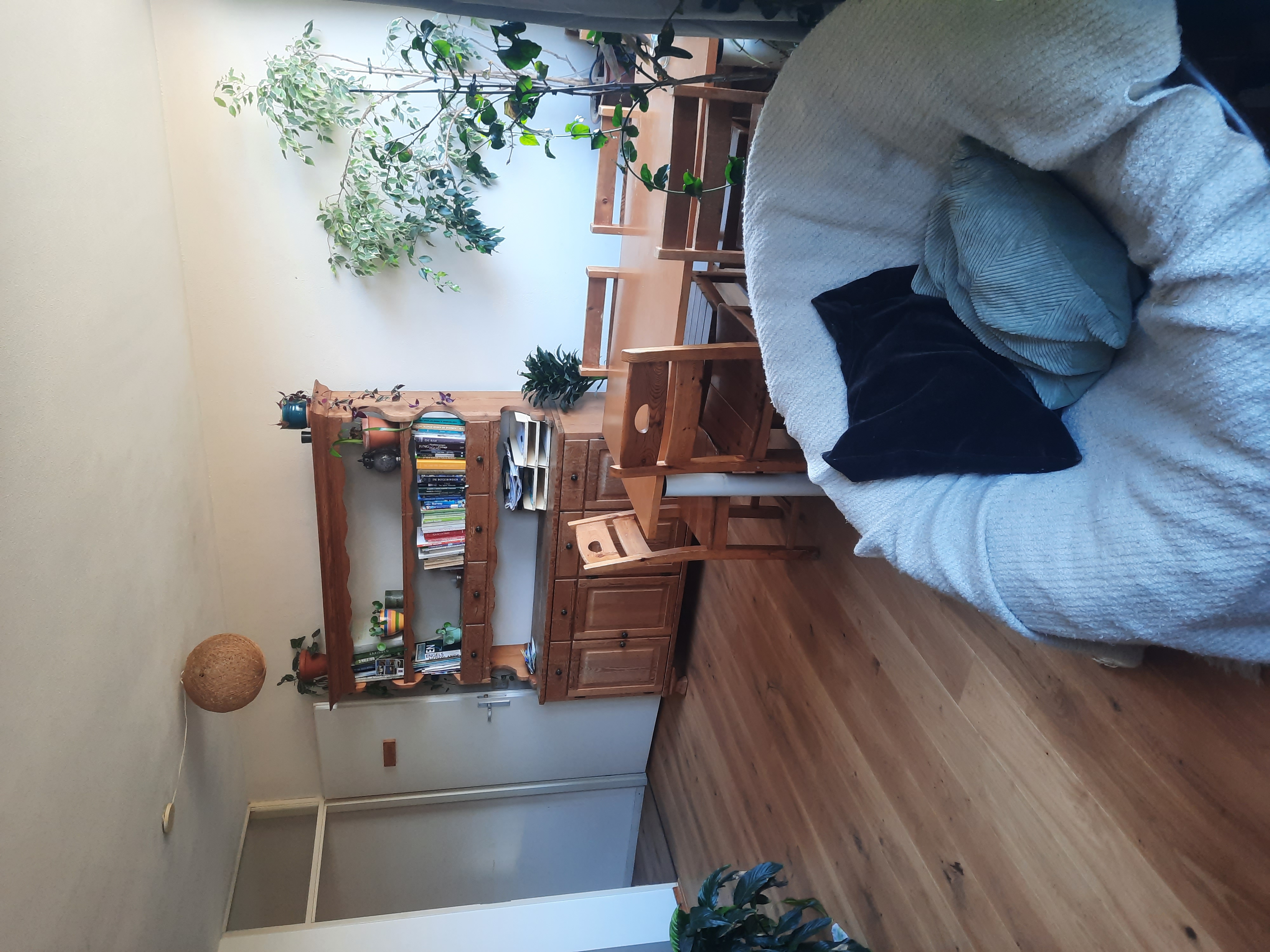 De kamer van ca. 20 m² is zonnig, met mooie houten vloer en ramen op het oosten en zuiden. Kale huur ligt rond €370–400, vaste lasten circa €100 per maand, huurtoeslag is mogelijk.