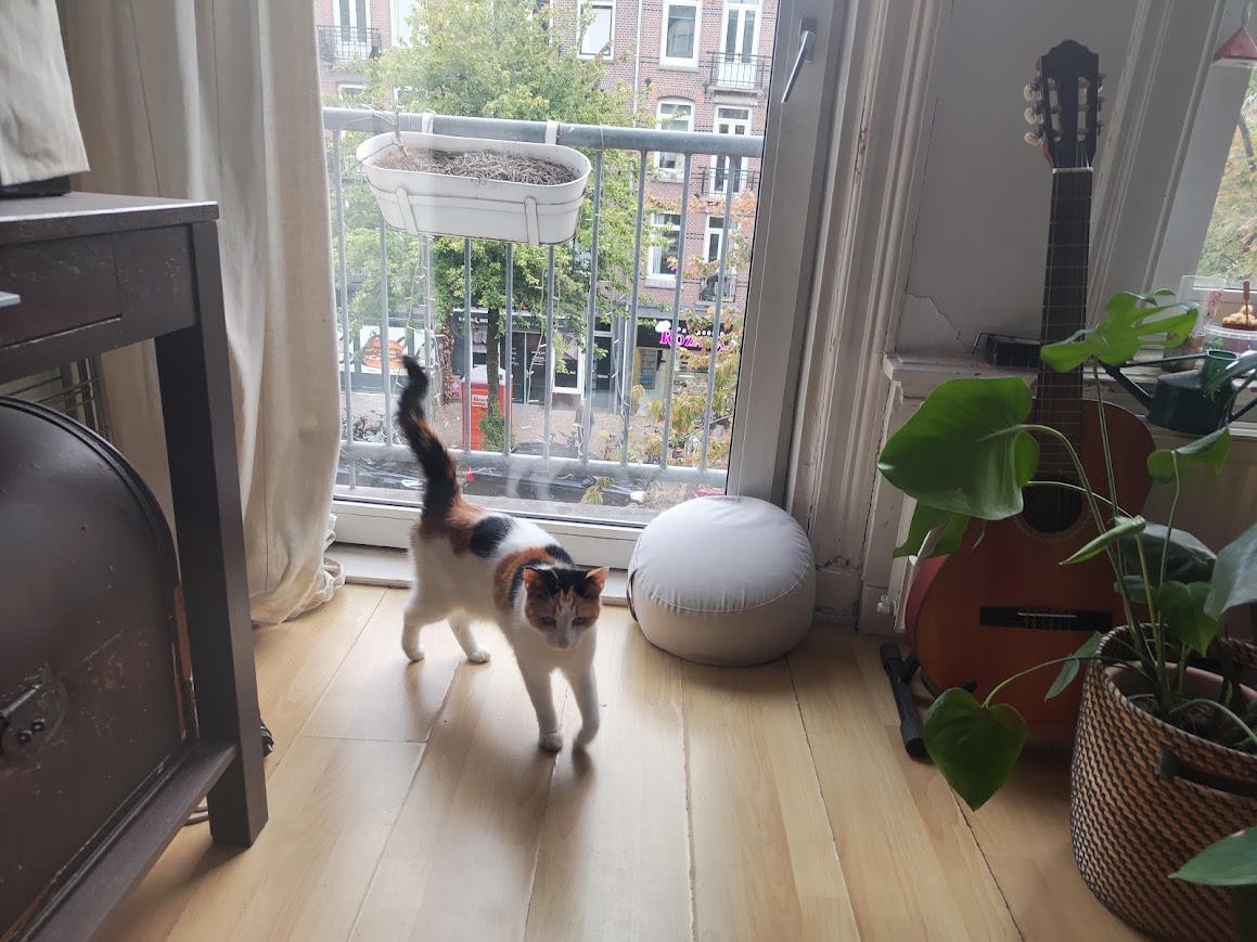 Ilja (38, v): ik woon inmiddels al 11(!) jaar op deze fijne plek. Ik werk in de kinderopvang als natuurpedagoog en als bijlesdocent in het onderwijs. Ik denk dat ik te omschrijven ben als creatief, muzikaal, avontuurlijk/ondernemend en sociaal. Ik ben graag op pad in binnen- en buitenland, leer graag nieuwe dingen en zing met veel plezier in een gezelligheidskoor. Verder ben ik gek op leuke kattenvriendjes en pas dan ook regelmatig op op katten in de buurt (heel soms ook op honden). Sinds een paar jaar komt er ook af en toe een lief aanloopkatje langs (ze klimt het balkon op), zie foto.