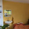 De kamer is 16 m2. Het is de grootste kamer en ook enige kamer beneden. De kamer grenst dus aan de woonkamer en is hiermee aan de gehorige kant. Er zit een wastafel in en twee grote ramen die uitkijken op de tuin en heg. De prijs zal rond de €670,- liggen.