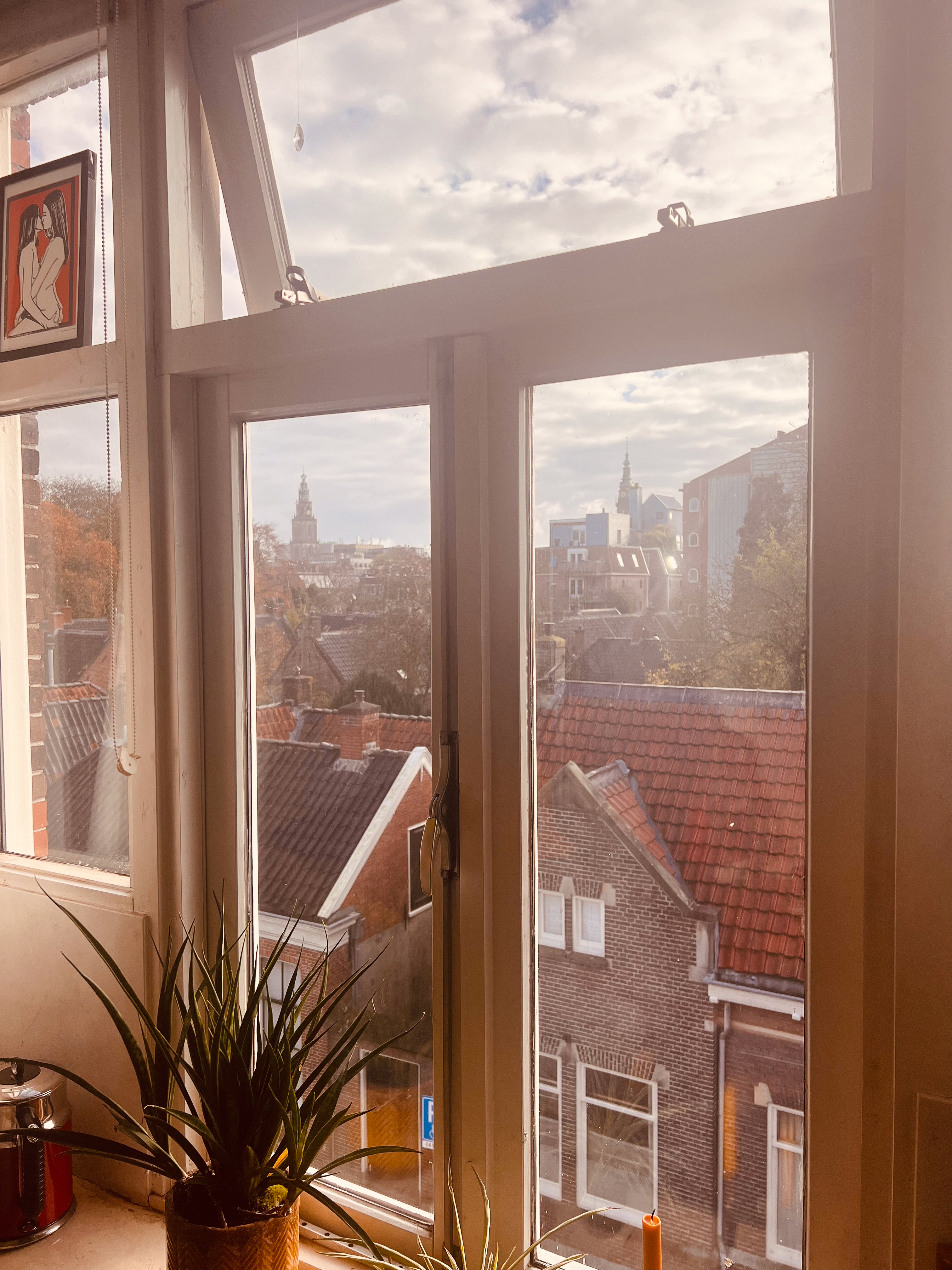 Vrij komt: 1 kamer 30m2, tweede verdieping met veel daglicht en uitzicht op de Martini Toren.