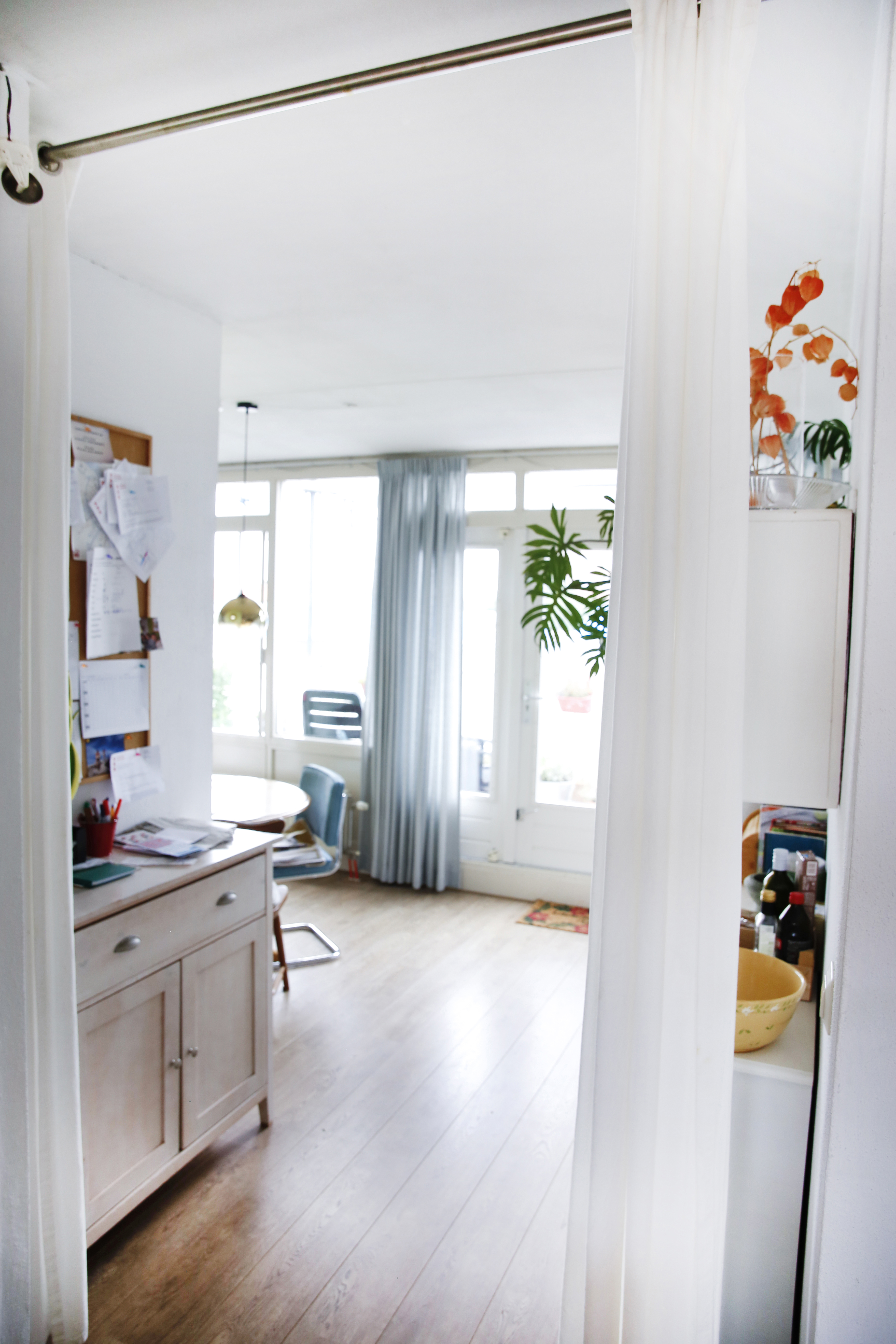 De straat waar we aan wonen is autovrij, dus lekker rustig. De woongroep bevindt zich op de 4e verdieping van het gebouw. Alle kamers hebben ramen over de gehele lengte van de ruimte, op het zuiden dus met heel veel (zon)licht. Het gebouw heeft geen lift, alleen trappen