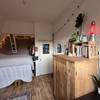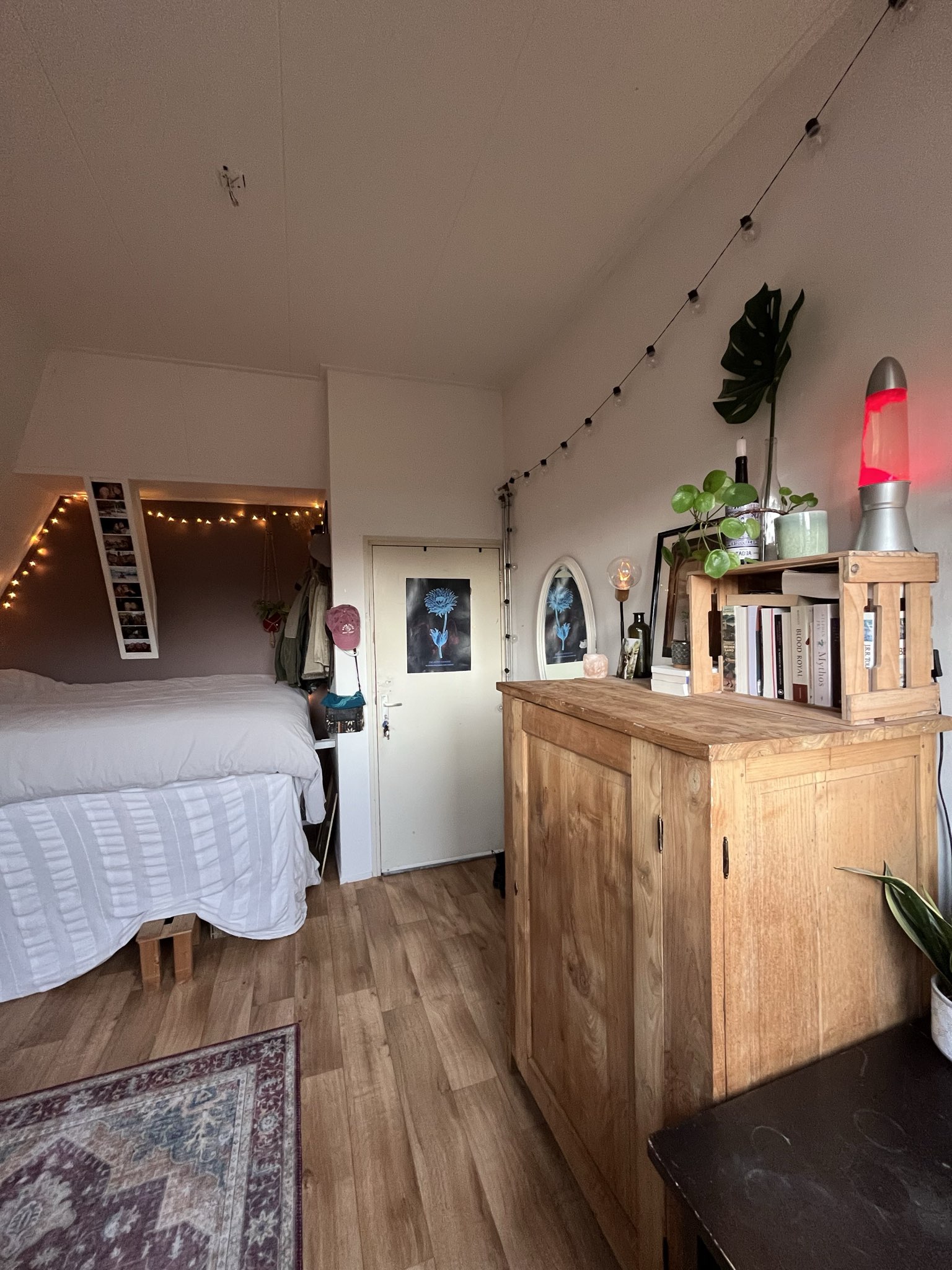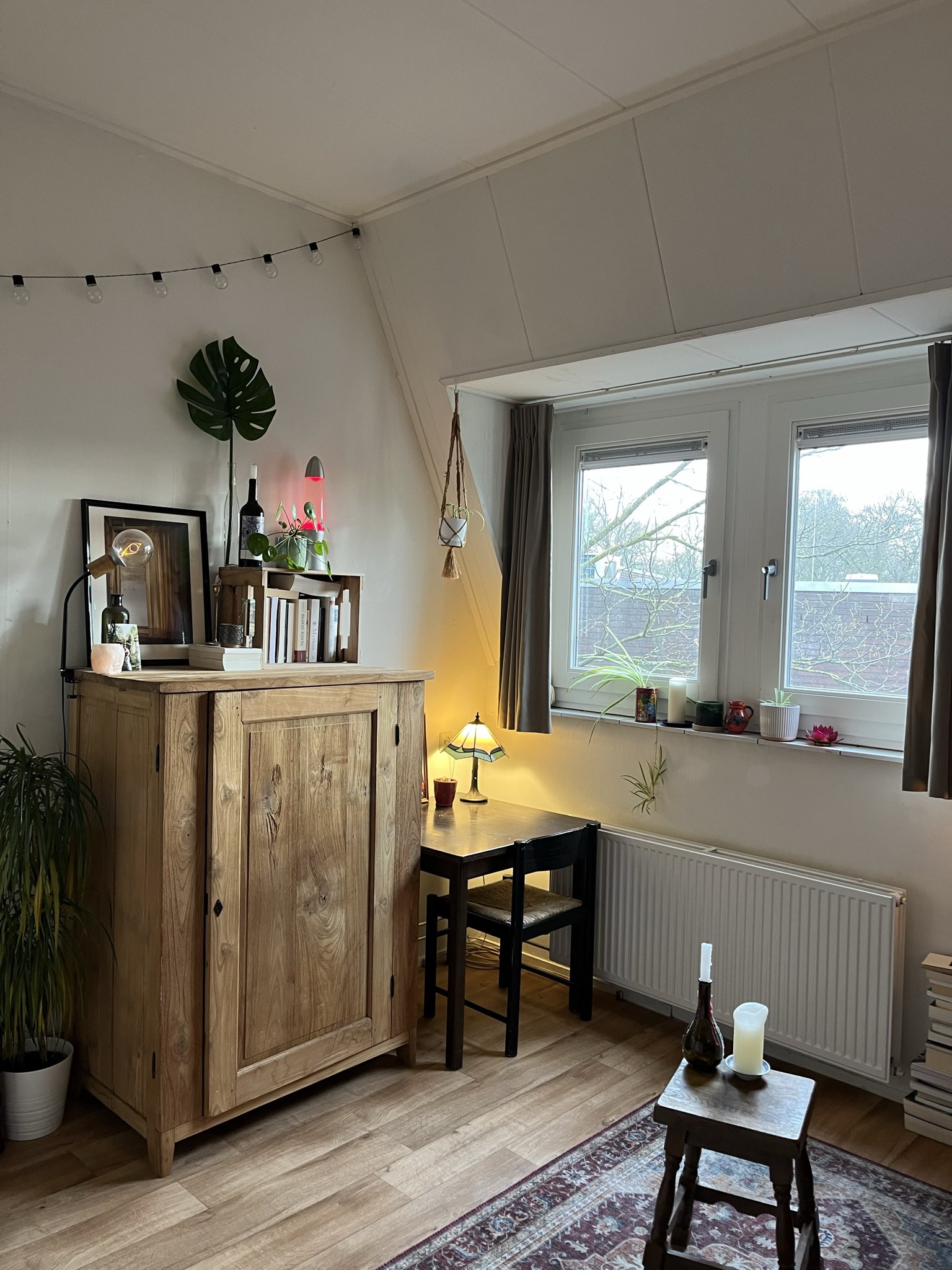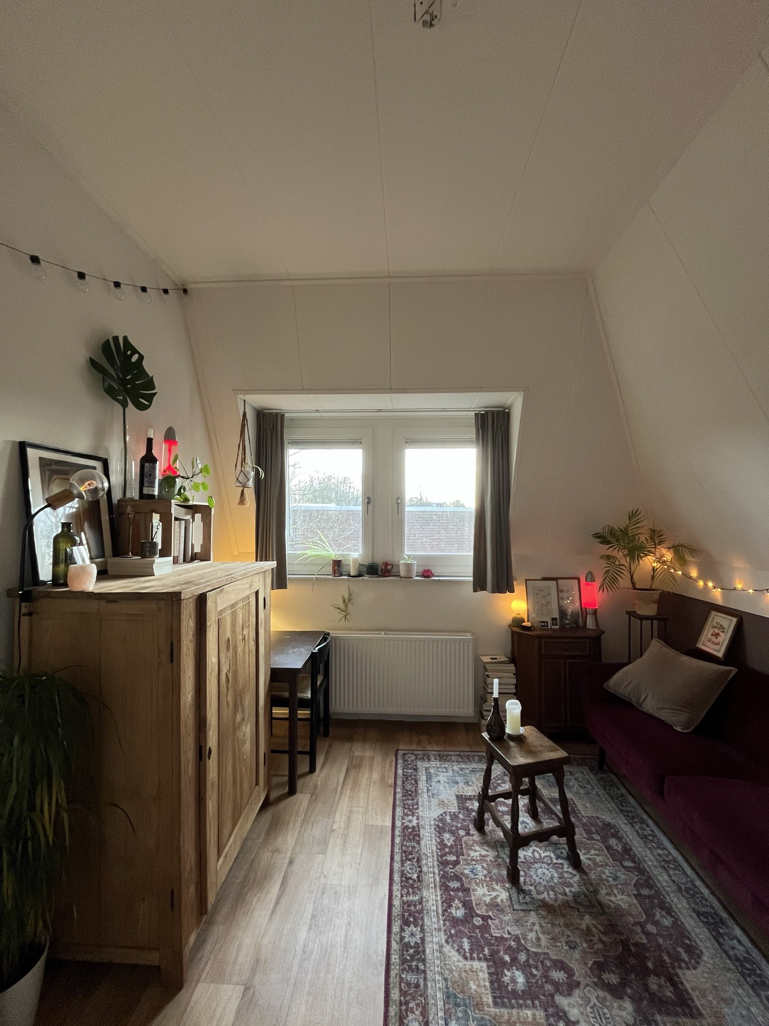 Je komt te wonen met drie anderen: Auke, Isha en Jens. Auke (24) studeert humanistiek en werkt bij broedplaats Heem. Ze is onze plantenmoeder en heel goed in thee zetten op het juiste moment. Isha (33) gamet graag en houdt van koken. Als er ineens een gigantische doos obscure pepers in de woonkamer staat, weet je dat die van hem is. Hij is ook goed in klussen trouwens. Twee rechterhanden, waarvoor wij hem danken. Jens (28) is schrijver en organiseert feestjes en weet ik wat allemaal. De zolder ligt vol vreemde rekwisieten dankzij de beste man.