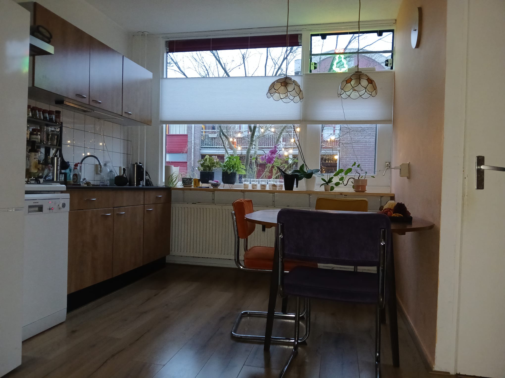 Jouw kamer van 17m2 ligt op de 1e verdieping aan de zuidzijde, met uitzicht op de achtertuin. Wasmachines en drogers delen we met buren in de schuur waar je ook je fiets kwijt kunt.