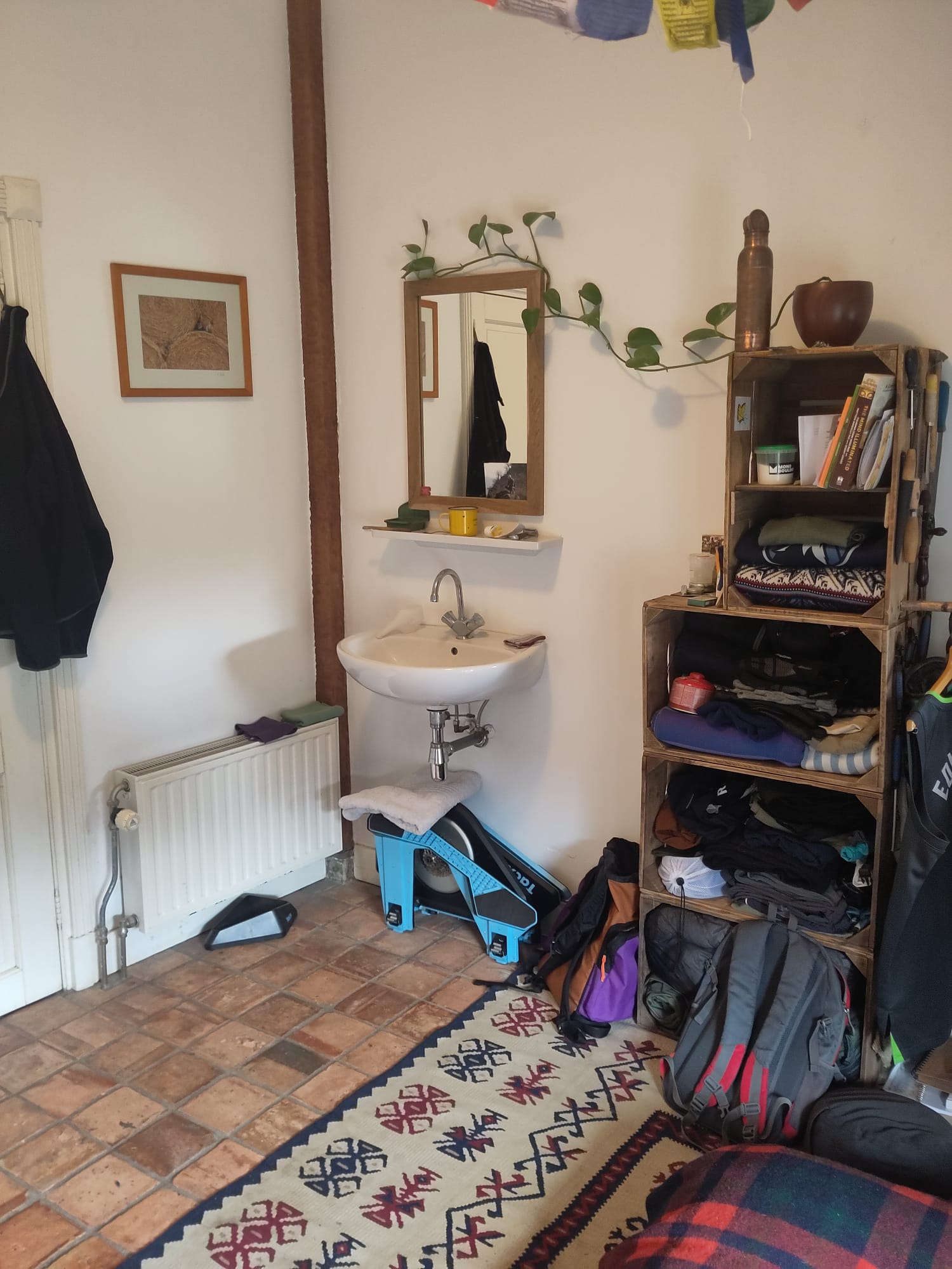 We share a kitchen, a cave (has a really cosy couch), the bathroom and a washing room. There is also a shed where you can park your bike. In the warmer months we have a big garden and a veranda which you can enjoy.
