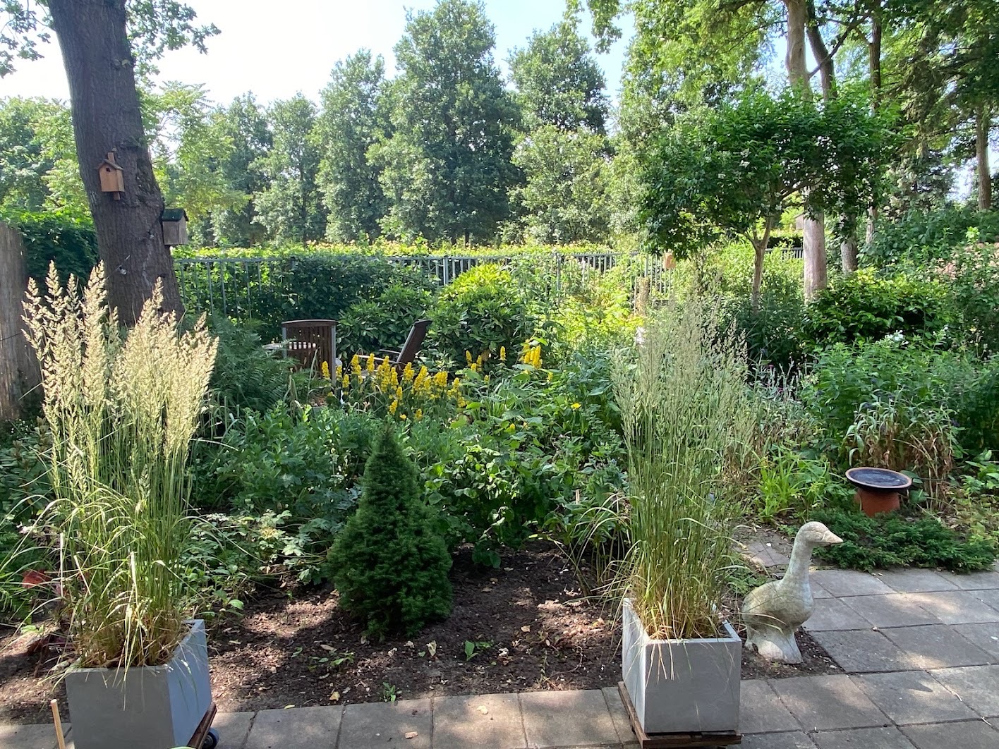 Er is een gemeenschappelijke tuinkamer met een bibliotheek, een piano en een open keuken. Er is een logeerkamer, een klushok, een kantoor en mogelijkheid tot het gebruik van wasmachine en droger. Er is een grote gemeenschappelijke tuin die de bewoners zelf bijhouden met behulp van een tuinman.