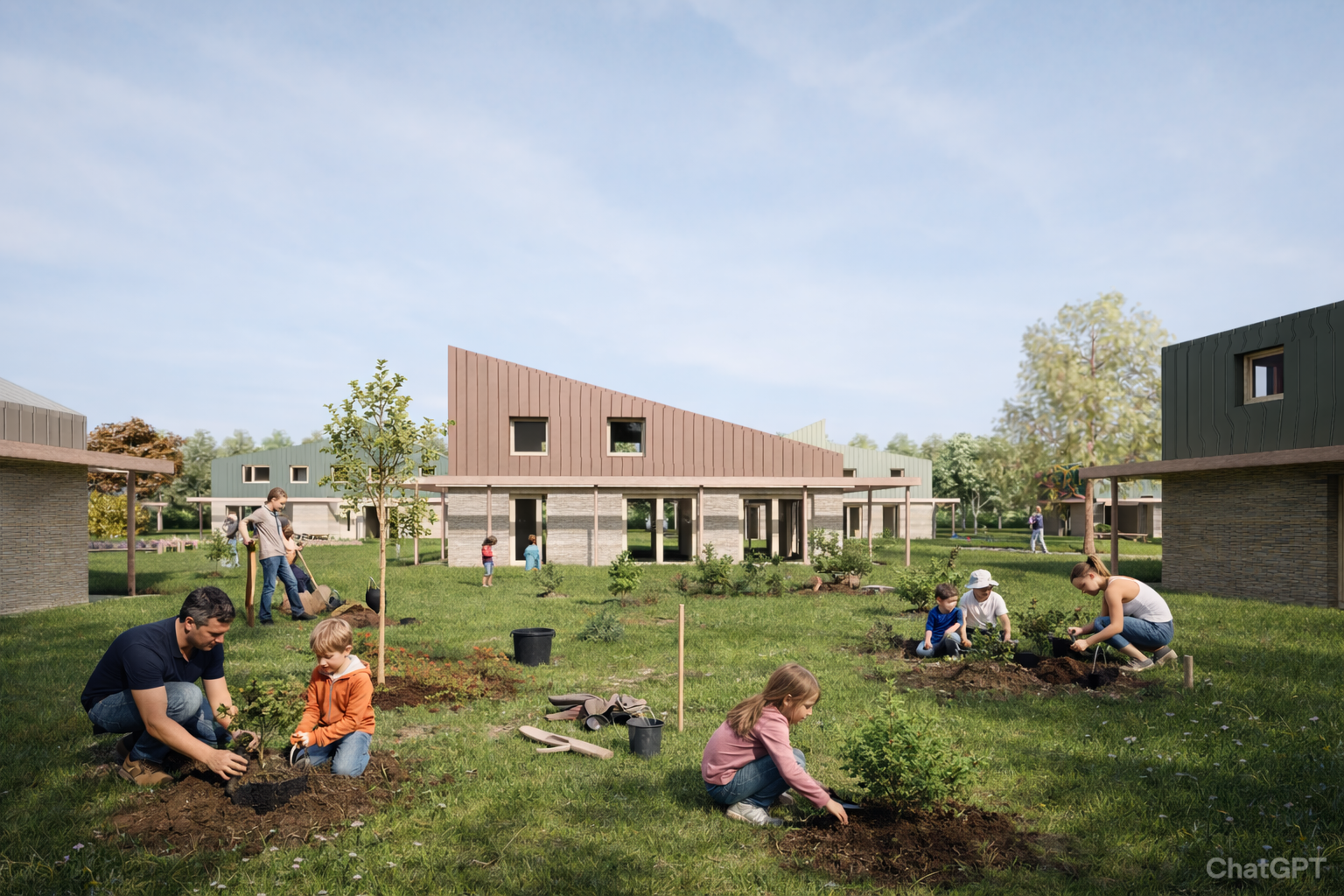 Ook is er veel gemeenschappelijk groen in de gezamelijke tuin.