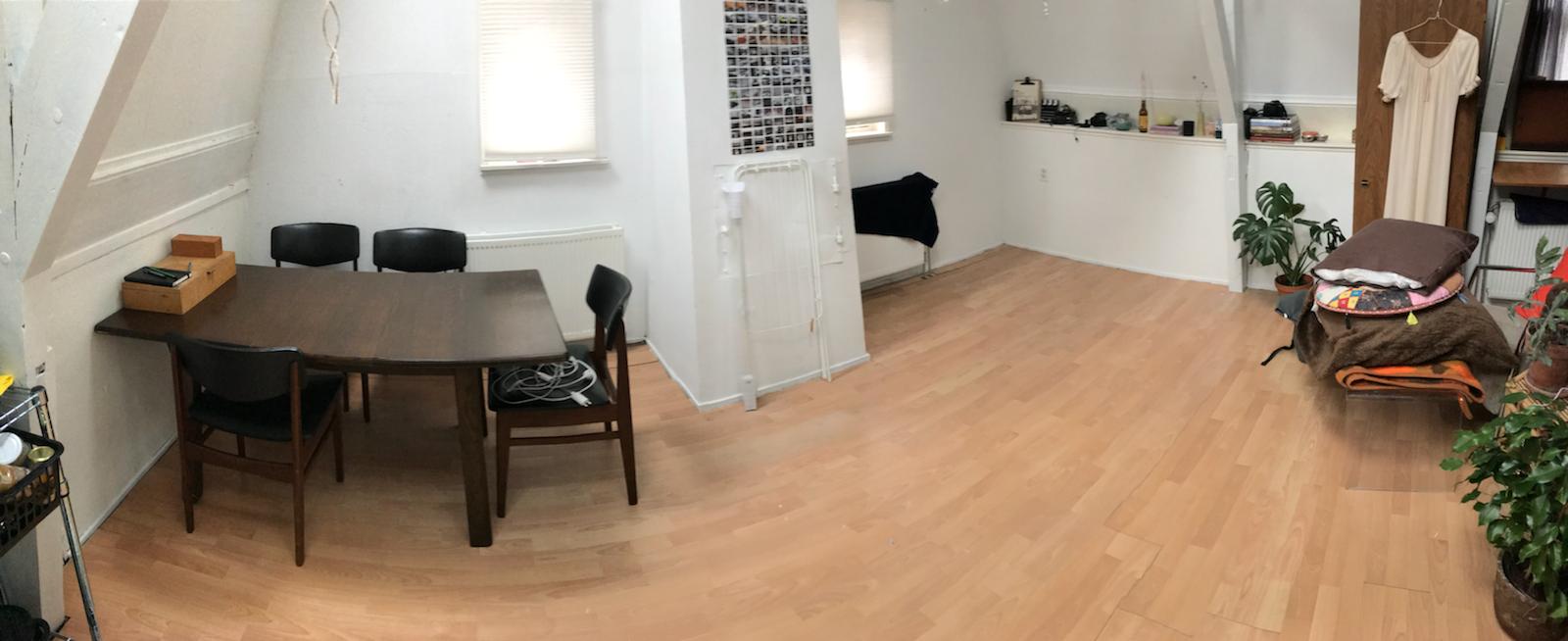 Kamer van circa 22m2. Dit is exclusief vide waar plaats is voor je matras.