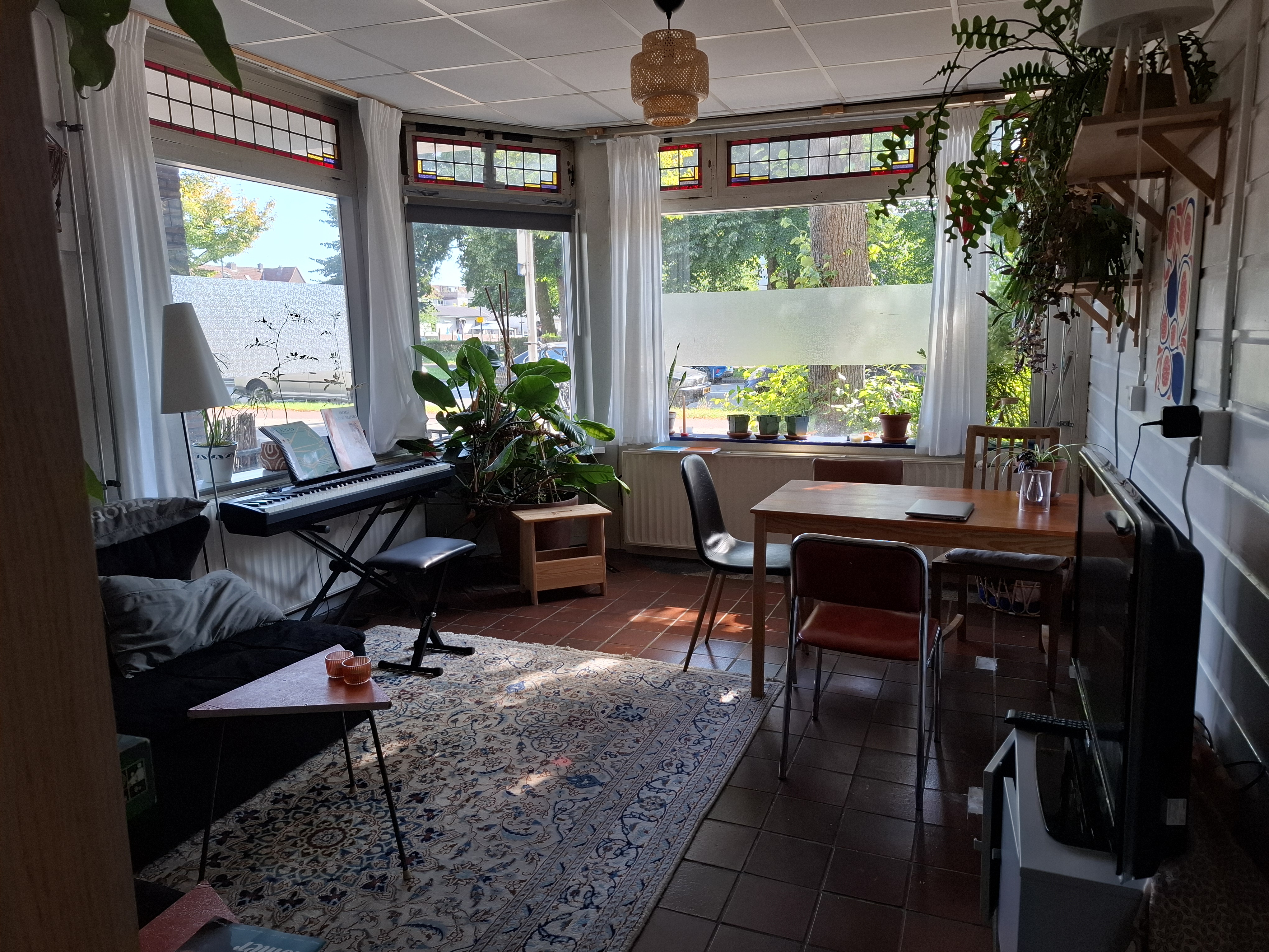 Je komt te wonen met Eva, Solène en Chris. Eva is van alle creatieve markten thuis. Ze heeft een passie voor koken en verbouwt in de tuin groente. Haar gitaarspel en zang zorgt voor de vrolijke noot in huis. Solène is onze nieuwste aanwinst, ze is een beetje Frans en een beetje Duits. Solène kookt heerlijk en graag en vind je vaak breiend op de bank. Last, but not least; Chris speelt graag piano en vult ons huis daarmee. Hij maakt kunst van papier. Chris kom je altijd tegen in huis onderweg naar eten en koffie. Je komt in de kamer van Anja, een ergotherapeut die op surftrip gaat.