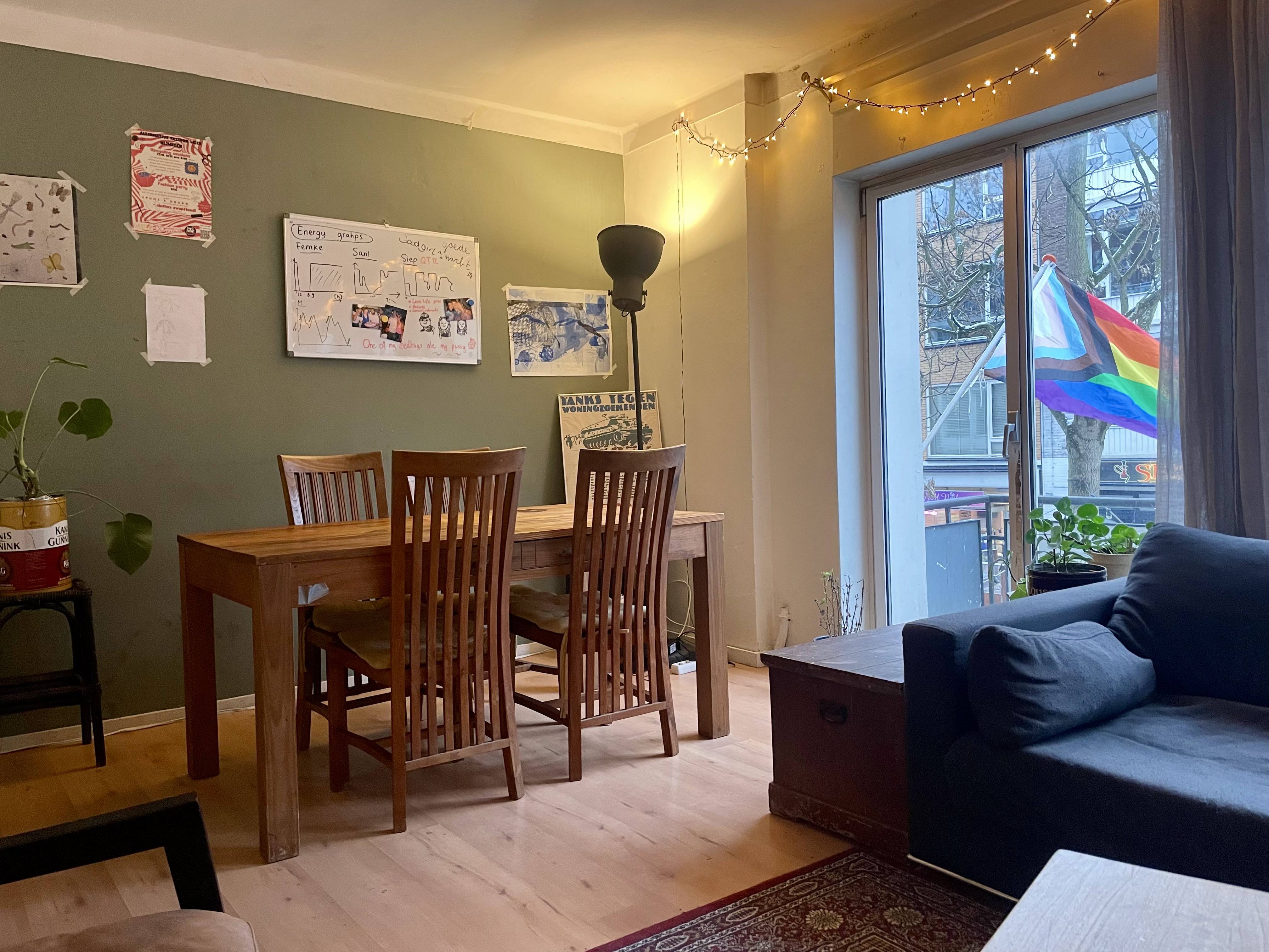 We’re looking for someone who has an honest way of communicating, ready to invest in the house on a practical level, and who wants to feel at home in belonging and not just coexisting. Our age preference would be mid-twenties/mid-thirties, although what matters is that you’re able to work with challenging situations, take criticism, be inquisitive, and reflect back. We will need to have confronting arguments, and be able to make up for them in a safe(r) environment. :) We also value how a good laugh can bring us together! Some chaotic, laid back energy is always welcome to light things up. We appreciate someone who’s social, propositive of activities to do, likes eating together, a person that takes the time to check in with you, and also values alone time. We want to make space for people who don’t have Dutch as a first language (yay internationals!), and we also wish to acknowledge that we’re openly giving priority to people who we feel would be a match with our current household that come from marginalised backgrounds and would have less opportunity in the Dutch housing market. Initial period of one year (with registration), with a renewable permanent contract. We intend to evaluate together after one year and to encourage all of us to actively reflect about how we feel about living together.
