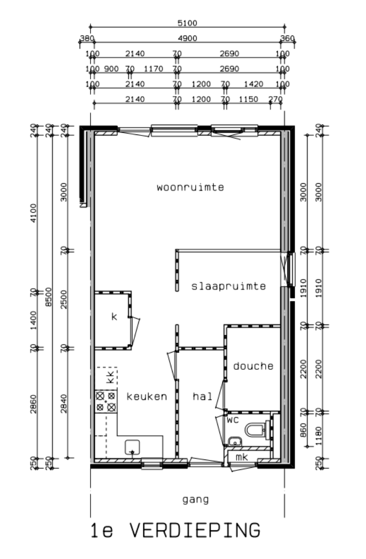 1-kamerwoning van ongeveer 40 m2 op de eerste verdieping (er is geen lift). Geschikt voor 1 persoon.