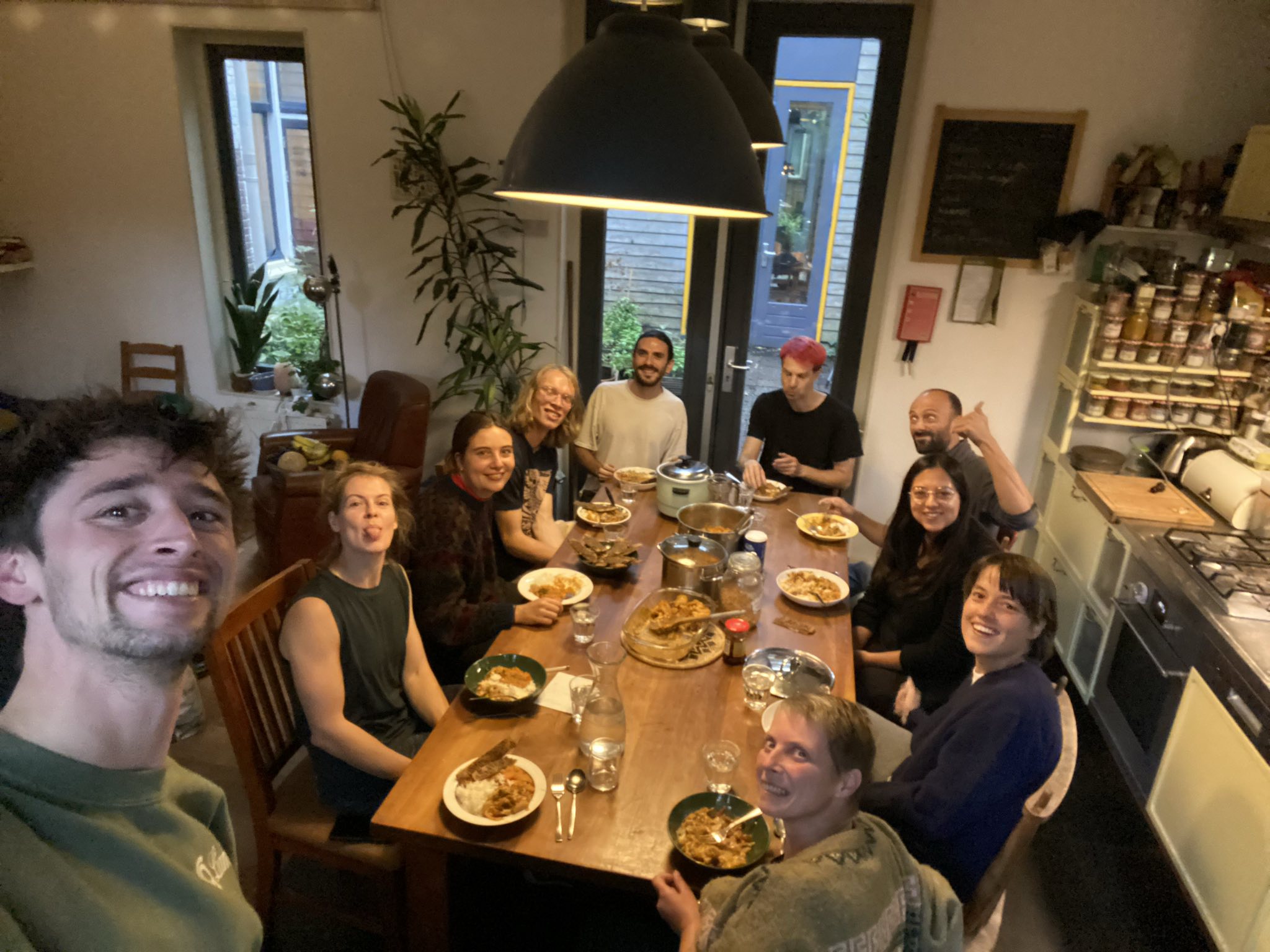 Het Nerdhuis 🏠 In het Nerdhuis wonen we met 11 mensen en een aanhankelijke poes. Wij zijn een gemixte groep van 23-50 jaar met verschillende achtergronden, van ontwerpers tot hackers, van introvert tot extravert en alles daartussen of daarbuiten. Wij zijn actief in de woongroep, in ons huis en in onze eigen levens. We zijn dwars en lief en waarderen elkaar zoals we zijn. Juist daarom zijn we groot voorstander van goede communicatie! De meeste van ons hebben deeltijdbanen, een onuitputtelijke lijst aan hobby's en/of zijn nog/weer aan het studeren. Wat ons verbindt, is dat we graag samen wonen, gefascineerd zijn door de wereld, onderzoekend en creatief van aard zijn en inclusieve overtuigingen hebben. Er is veel ruimte in het huis voor eigen invulling om dingen spontaan te laten ontstaan en zo kan het soms ineens heel vrolijk en bruisend worden, maar ook regelmatig stil en rustig zijn. We hebben op het moment een abonnement voor lokale/biologische groente en fruit. We zijn in een proces om in de basis al het eten te delen, met ruimte natuurlijk om je eigen lievelingsproducten te hebben.