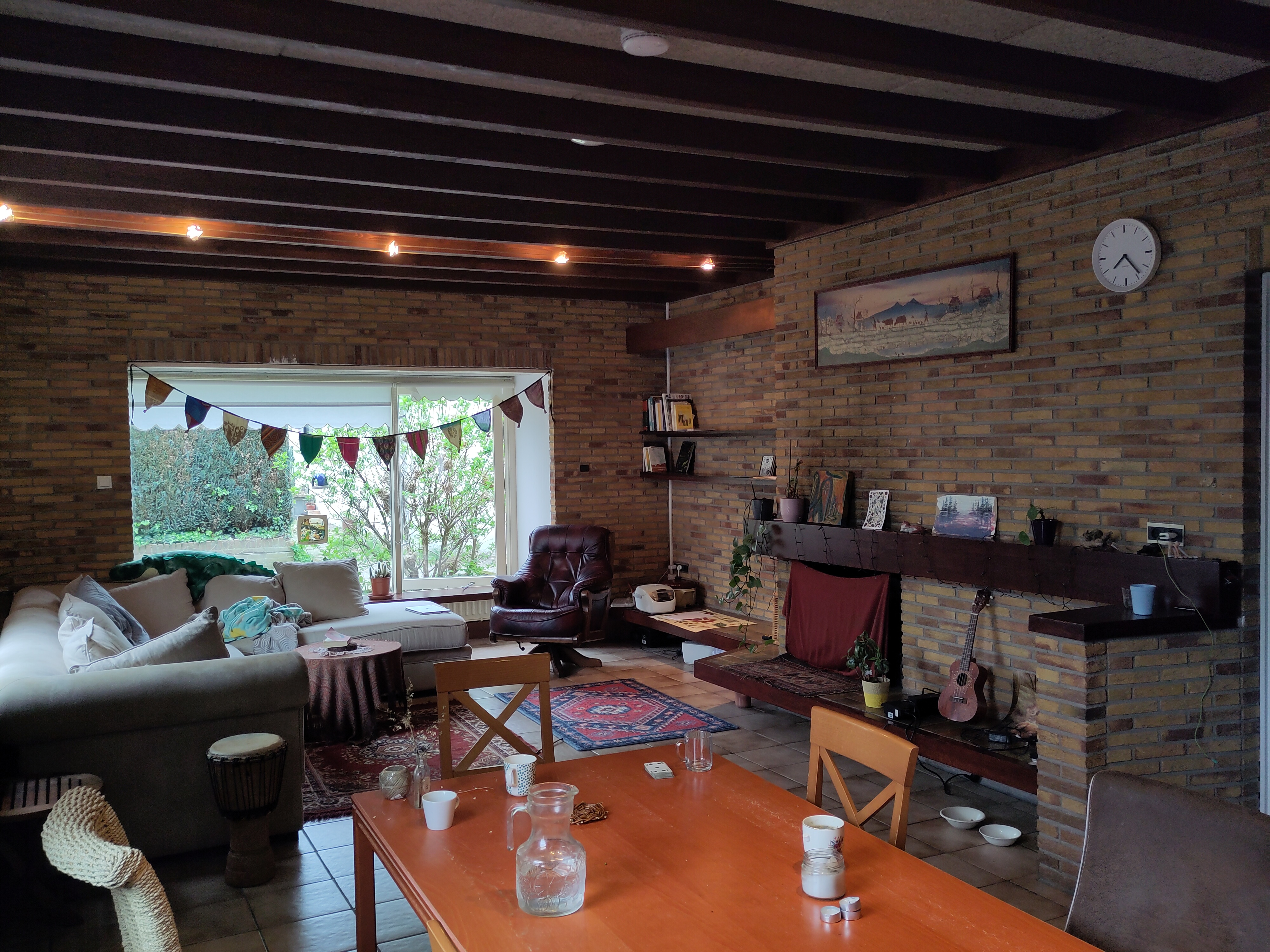 We wonen momenteel met 6 mensen (20-30 jaar), onze lieve oranje kat Milo en 3 prachtige kippen. We hebben een ruime woonkamer en een grote tuin waar we soms een kampvuur maken of buiten koken.