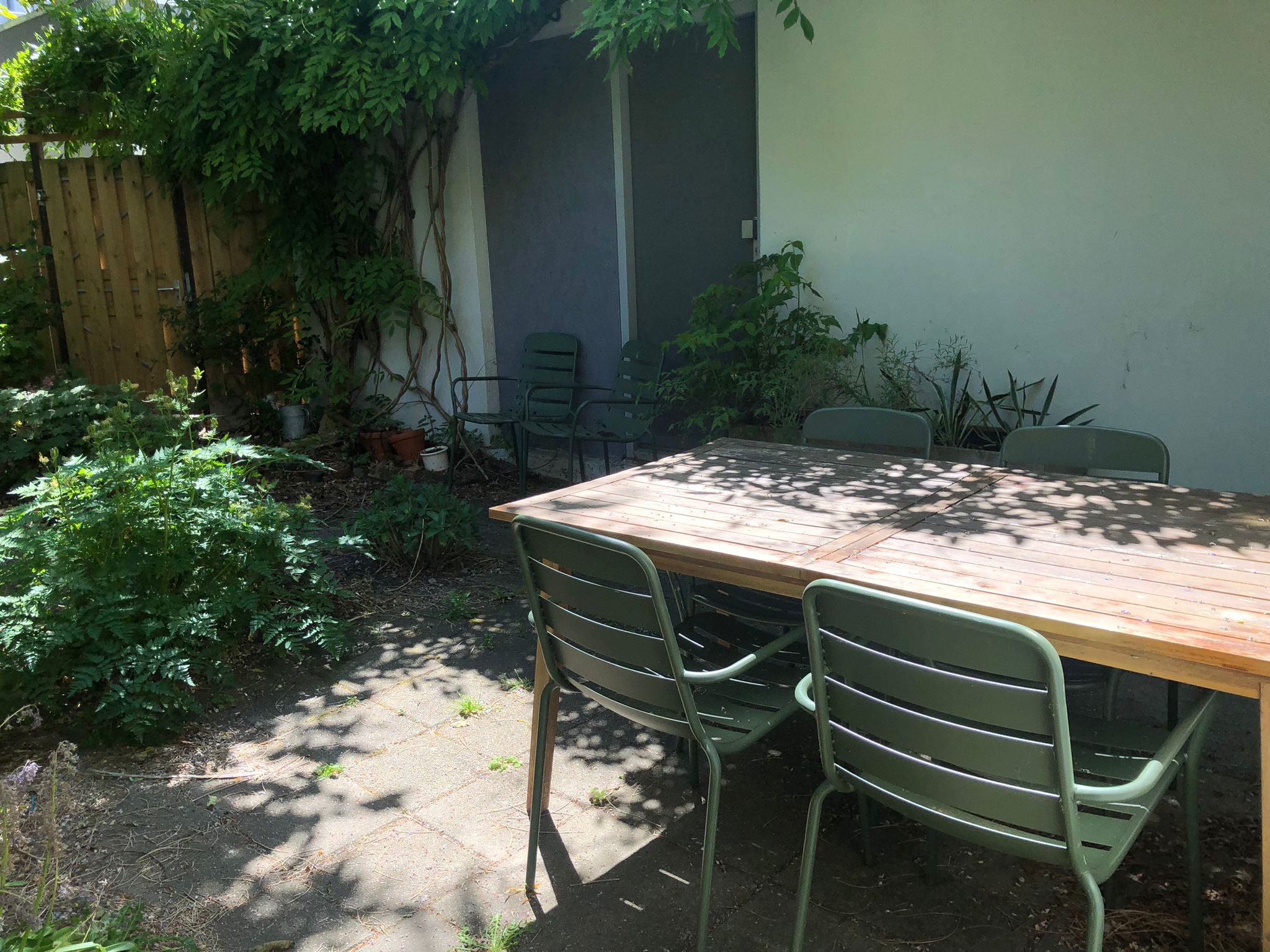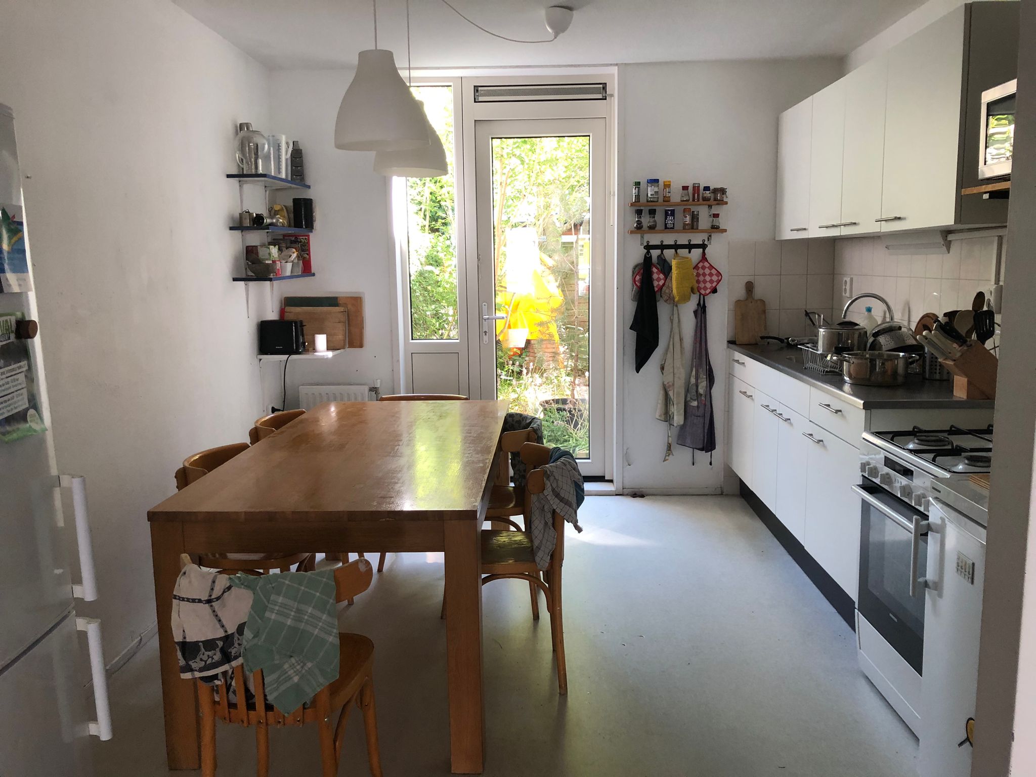 Een ruime woonkamer met keuken van ongeveer 40m2. We hebben 3 wc’s, 2 douches en een washok met wasmachine. We zijn ook in het bezit van een tuin met daarin een grote walnootboom, een pizza oven en een schuurtje. Daarnaast hebben we redelijk wat opslagruimte, inclusief een plekje binnen voor je fiets.